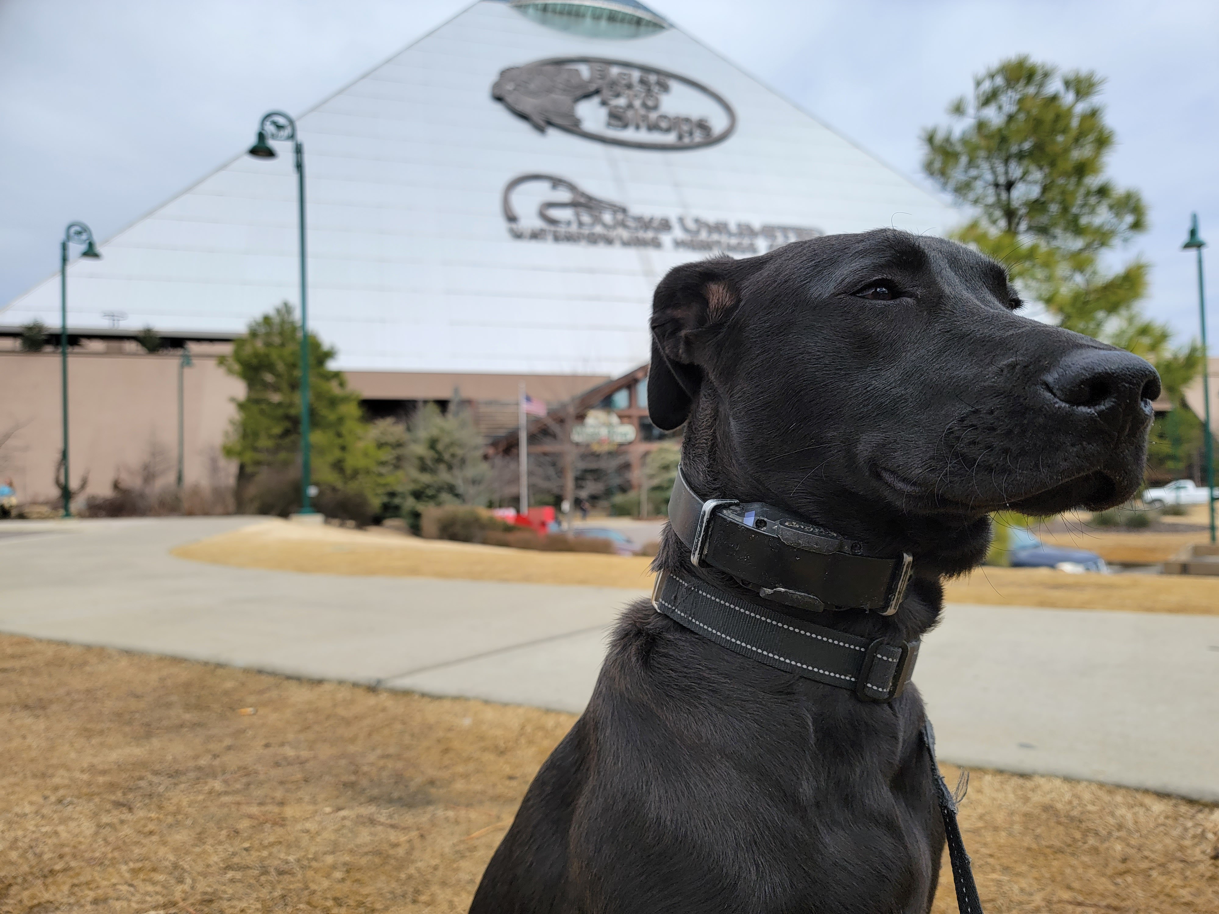 A brief drive downtown and we quickly realized that Memphis is in pretty deep economic crisis. Store after store, restaurant after restaurant closed, boarded up…trash EVERYWHERE and so many downed trees likely from the last storm that rolled through. Downtown had lots of closed walkways, and even some downed wires. We decided to take a little safer route (since we weren’t gonna get in anywhere to listen to live music or anything) and visited Bass Pro Shops (Dog Friendly Yeah!). Yeah, I know…there’s one everywhere…but in Memphis it’s in a PYRAMID!